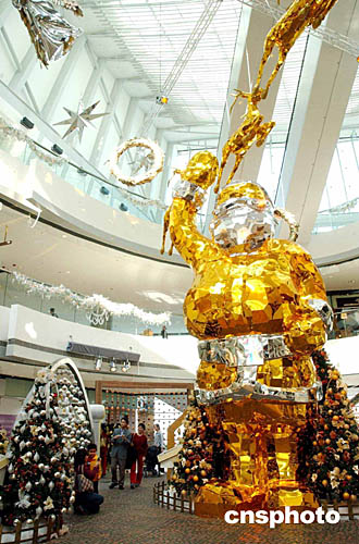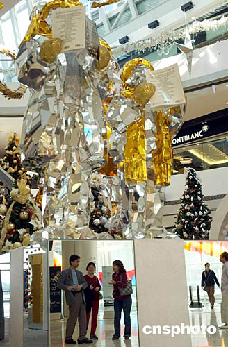 香港最高的國際金融中心商場(chǎng)在圣誕節(jié)前夕,布置一組美輪美奐的水晶玻璃圣誕裝飾,令顧客的晶瑩剔透的圣誕氣氛中流連忘返。作者:洪少葵