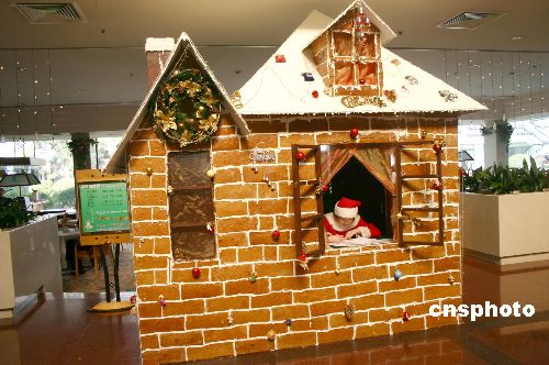 “圣誕節(jié)”快來臨,杭州商家乘機大做文章,以期迎來一個好賺頭。眼下,杭州的大商場、賓館門口都放滿了圣誕樹、圣誕禮物。杭州某賓館用巧克力和糖做了一個圣誕屋招徠顧客。作者:張茵