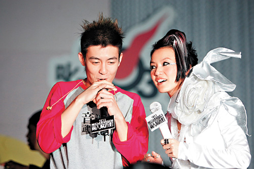 有“緋聞王”之稱的Edison,看來(lái)不太介懷緋聞事,邀一班緋聞女友上臺(tái)撐場(chǎng),毫不避忌;更與最新緋聞女友Stephy在臺(tái)上不時(shí)耳語(yǔ),看來(lái)甚親密。事后Edison表示,所謂耳語(yǔ),是因?yàn)镾tephy受驚,于是他便安慰對(duì)方。