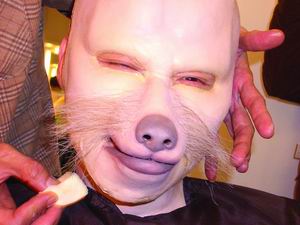 為了這個角色,張學(xué)友日前在《雪狼湖》排練最緊張的階段,特地抽出時(shí)間來制作“老狼”這個造型,還專程請來了香港著名造型師奚仲文來設(shè)計(jì),而負(fù)責(zé)制作的則是香港大名鼎鼎的特技化妝師陳國雄。為追求逼真的效果,整個模型的制作過程及其復(fù)雜,在根據(jù)張學(xué)友的頭部、面部特征制作“老狼”頭部模型時(shí),僅僅倒模一個程序,就整整花費(fèi)了六個小時(shí)的時(shí)間。倒模做出形狀之后,制作人員還要將一絲不茍做出的毫發(fā)必現(xiàn)的模型給學(xué)友試妝,然后不斷修整,直至這個“老狼”與張學(xué)友合二為一。這僅僅是為了“老狼”這個形象,從倒模制作到拍攝完畢,花去眾多造型、設(shè)計(jì)人員以及學(xué)友整整3天的時(shí)間,耗資更是超過六位數(shù)。