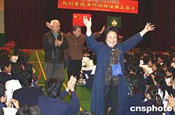 來自小學(xué)舞蹈組的五十六位同學(xué),穿著五十六個(gè)少數(shù)民族的艷麗服裝,一一亮相,并表演了《歡聚澳門》歌舞劇。甫下飛機(jī)即趕來的潘曼霞不顧勞頓,高歌一曲《我愛你,中國》,贏得滿堂喝彩。