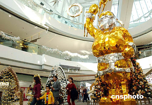 圣誕節(jié)將至,香港國際金融中心商場裝飾一新,美輪美奐的大型圣誕節(jié)彩飾引人注目。作者:洪少葵