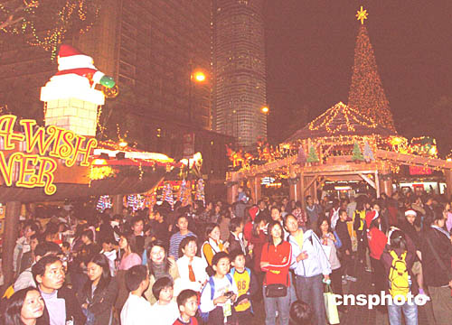 一列由圣誕老人駕駛的火車(chē)裝滿(mǎn)圣誕禮品﹐緩緩駛出位于香港中環(huán)皇后像廣場(chǎng)的“圣誕平安小鎮(zhèn)”﹐贏得眾多市民的觀(guān)望﹐從中領(lǐng)略到節(jié)日更加溫馨的滋味。