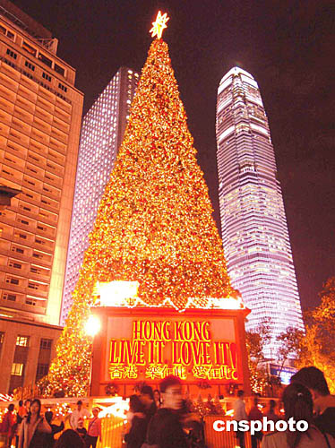 位于中環(huán)皇后像廣場(chǎng)的巨大圣誕樹(shù)與國(guó)際金融中心二期大廈遙相呼應(yīng)﹐看似媲美。