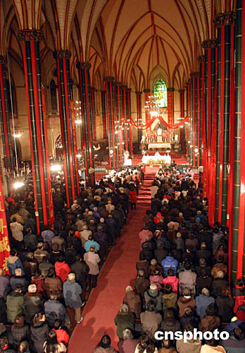 北京眾多天主教信眾來到天主教宣武門教堂參加圣誕彌撒。中新社記者:鄒憲