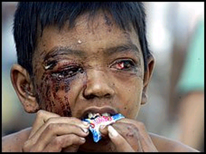 在一個(gè)個(gè)受災(zāi)國(guó)家,兒童成了這次地震引發(fā)的海嘯的最大受害者,排山倒海的巨浪卷走和淹死了成千上萬(wàn)的兒童,野蠻地奪去了幾乎整個(gè)一代亞洲人的生命。