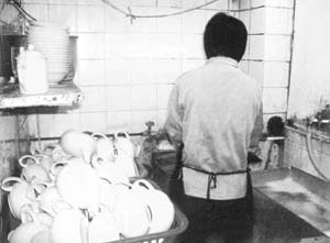 在家呆了一個(gè)月后,心想總不能這樣坐吃山空吧,又出去找工,由于不會(huì)英文與廣東話,又無專長(zhǎng),文職工作根本沒人要,結(jié)果又到了美心快餐店洗碗。這次因?yàn)橛辛诵睦頊?zhǔn)備干起來也就沒那么辛苦。干了幾天,經(jīng)理可能見我比較清爽、利索,于是調(diào)我到前堂做清潔。在前堂期間,我遇到了一個(gè)經(jīng)常來吃飯的50多歲男子,他一見到我便表現(xiàn)特別熱情,出于禮貌,我亦沒有介意,后來發(fā)展到我去收他的碗盤時(shí),他竟摸我的手,我十分害怕,又不敢同經(jīng)理講,只有躲他。到后來他竟然站在餐館門口等我下班,并要求送我回家,還說到美心吃飯完全是為了看我,這下可把我嚇懵了,第二天我便辭工不干了。這件事對(duì)我震動(dòng)很大,我再也不敢去快餐店找工了!