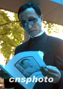 五月十五日上午,因車禍身亡的著名演員牛振華追悼會在北京八寶山舉行,香港演員萬梓良為其送行。中新社記者:張宇