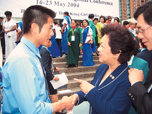 中新網(wǎng)5月18日電 據(jù)香港大公報報道,作為今年的女童軍國際親善大使,郭富城昨日應(yīng)邀出席女童軍“第八屆亞洲太平洋區(qū)會議”,同場的還有特首夫人董趙洪娉女士。活動期間,“城城”和董太不時交談,原來董太想邀請他出席一些公益活動,希望他可以幫手。