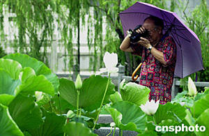 第四屆澳門荷花節(jié),六日在(左乙右水)仔花城公園揭幕,數(shù)十個(gè)品種的荷花在爭相怒放,吸引了不少攝影發(fā)燒友冒雨采風(fēng)。作者:梁永強(qiáng)