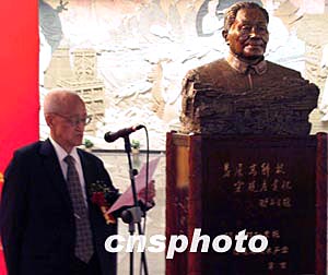 中新網(wǎng)北京6月9日電(記者 孫自法)中共第二代領(lǐng)導人、中國改革開放總設計師鄧小平誕辰百年的首尊紀念銅像,九日在北京中華世紀壇揭幕。銅像將長久呈放于中華世紀壇的世紀大廳,供參觀者瞻仰紀念。