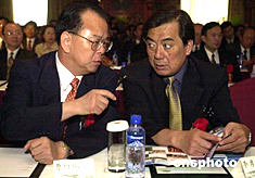 中國(guó)--東盟博覽會(huì)澳門推介會(huì)十二日在澳門舉行,廣西壯族自治區(qū)書記曹伯純與澳門中聯(lián)辦副主任李勇武在推介會(huì)上親切交談。作者:梁永強(qiáng)