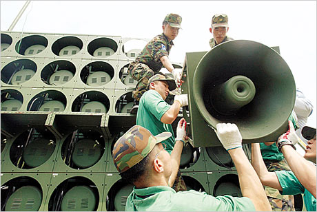韓國在當天上午10時首先撤掉了京畿道坡州市交河面某部隊的擴音器,并在西部前線地區(qū)撤掉了5個擴音器。