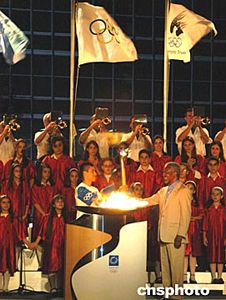 中新社聯(lián)合國(guó)六月十九日電 (記者 陳建 趙海燕)十九日開始在紐約傳遞的雅典奧運(yùn)火炬當(dāng)天傍晚抵達(dá)紐約聯(lián)合國(guó)總部,這是奧運(yùn)圣火首次經(jīng)過(guò)聯(lián)合國(guó),紐約聯(lián)合國(guó)總部為此舉行了隆重儀式,并升起了奧林匹克休戰(zhàn)旗,呼吁全世界為奧林匹克創(chuàng)造和平。