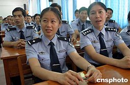 為了迎接“中國——東盟博覽會(huì)”的到來,提高警員的外語水平,掌握基本國際禮儀,六月二十一日南寧市交警迎接“中國——東盟博覽會(huì)”外語培訓(xùn)班在廣西國際青年交流學(xué)院舉辦開班典禮,培訓(xùn)主要以學(xué)習(xí)英語及越語等東盟各國小語種為主,交警們正在認(rèn)真學(xué)習(xí)越語“你好”。中新社記者:張勤