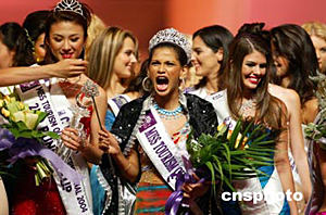 6月29日,令人矚目的2004國際旅游小姐冠軍總決賽在浙江杭州落下帷幕。印度選手ZABINA ABDUL RASHID KHAN,(中)從來自51個國家的53位旅游形象大使中脫穎而出獲得冠軍。德國選手JOHNALENA KWASOW獲得亞軍,中國選手鈔俊男(左)也發(fā)揮了較好的水平,在強手如林的競爭中獲得第三名。作者:饒強