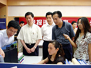 中新網(wǎng)7月1日電 據(jù)中國網(wǎng)消息,今天(1日)上午,國務(wù)院新聞辦公室副主任蔡名照來到互聯(lián)網(wǎng)“違法和不良信息舉報中心”看望工作人員,對工作人員表示慰問。蔡名照說,舉報中心網(wǎng)站開通之后,受到廣大群眾的熱情關(guān)注和大力支持,一定要辦出成效來,使它成為中國管理互聯(lián)網(wǎng)的一個新的有效渠道。