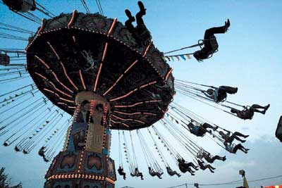 這是嘉年華進場第一個機動游戲。高度17米,最大下降速度11.5米/秒,乘坐人數(shù)32人。