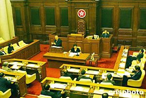 香港特別行政區(qū)行政長(zhǎng)官董建華,七月十三日出席香港立法會(huì)舉行的會(huì)議,答復(fù)立法會(huì)議員提出的問(wèn)題。作者:趙振清