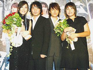而另一位樂團成員石頭的夫人也特別以一身簍空黑色旗袍性感現(xiàn)身特映會上,讓石頭在一旁忍不住稱贊“好辣!”石頭說,與老婆盛裝觀賞甜蜜約會電影《五月之戀》,感覺好象第二次的結(jié)婚典禮,很開心。
