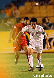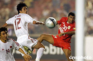 七月十七日晚,在北京工人體育場進(jìn)行的亞洲杯揭幕戰(zhàn)中國隊(duì)對巴林隊(duì)的比賽中,巴林隊(duì)二比二戰(zhàn)平中國隊(duì)。