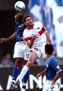 二○○四年七月二十三日,亞洲杯B組比賽在濟(jì)南山東省體育中心重燃戰(zhàn)火,由業(yè)余球員組成的約旦隊(duì)迎戰(zhàn)目前小組排名第一的科威特隊(duì)。中新社記者:武仲林