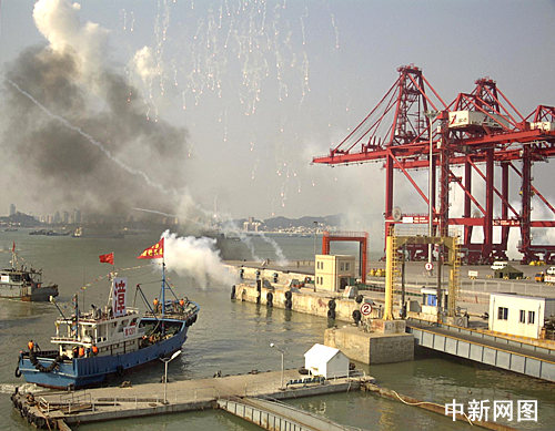 中新網(wǎng)漳州7月25日電 (記者 林國瑞)七月二十四日下午三時(shí)至四時(shí)三十分,福建省海上支前保障實(shí)兵演習(xí)在漳州港舉行。