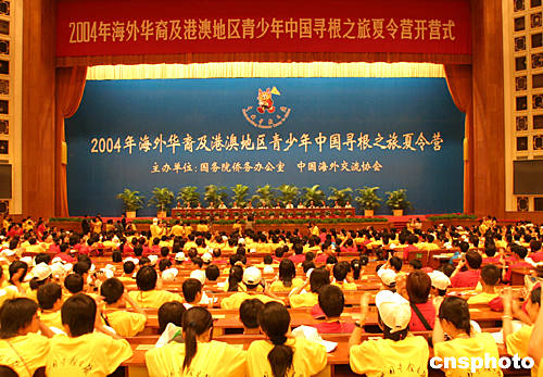 “2004年海外華裔及港澳地區(qū)青少年中國尋根之旅夏令營”開營儀式二十七日在北京人民大會堂舉行,此次由國務(wù)院僑辦和中國海外交流協(xié)會主辦的夏令營共有三十六個國家和港澳地區(qū)的近四千名青少年參加。中新社記者:史利