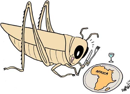中新網(wǎng)7月31日電 蝗蟲今年在非洲大陸肆虐,嚴(yán)重影響了非洲的農(nóng)業(yè)生產(chǎn)。7月底,來自非洲馬格里布地區(qū)和西非荒漠草原地區(qū)的非洲9國(guó)的農(nóng)業(yè)部長(zhǎng)在阿爾及爾集會(huì),并制定了緊急掃蝗方案,要堅(jiān)決擊退貪吃蝗軍的進(jìn)攻。(來源:法《國(guó)際報(bào)刊》)
