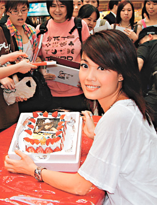 慶功宴后,祖兒便漏夜趕返香港,準(zhǔn)備昨日的簽名會,怎知回來后又遇上交通意外。雖然祖兒經(jīng)已疲倦不堪,但仍要死撐。在昨日的簽名會上,派了五百個(gè)籌,為了預(yù)祝祖兒的寫真集有五萬本銷量,歌迷特別送上蛋糕給她,以示祝賀。