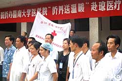 國(guó)務(wù)院僑務(wù)辦決定在二○○四年七月到八月組織“僑界送溫暖”醫(yī)療隊(duì)赴全國(guó)華僑農(nóng)場(chǎng)開(kāi)展義診活動(dòng),目前已有一支醫(yī)療隊(duì)伍開(kāi)赴云南。此次奔赴海南的有六位副主任醫(yī)師,攜帶價(jià)值約二萬(wàn)元藥品,在海南興隆和東方兩個(gè)華僑農(nóng)場(chǎng)進(jìn)行為期一周的義診,同時(shí)還要對(duì)農(nóng)場(chǎng)醫(yī)護(hù)人員進(jìn)行培訓(xùn)。作者:顧時(shí)宏