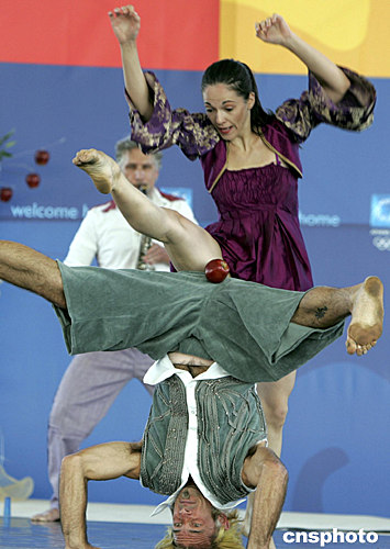 一支激情四射的希臘舞蹈團(tuán),當(dāng)?shù)貢r間8月2日在雅典奧運(yùn)村內(nèi)為世界各地來賓表演“愛情恩怨”現(xiàn)代精彩舞蹈。中新社記者:任晨鳴