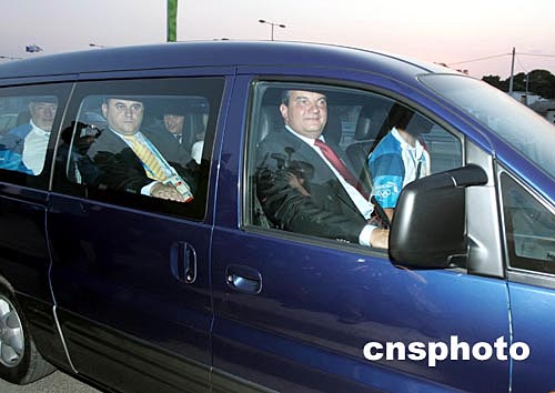 當(dāng)?shù)貢r(shí)間8月3日晚,希臘總理在組委會(huì)要員陪同下乘車巡視雅典奧運(yùn)會(huì)賽場(chǎng)。中新社記者:任晨鳴