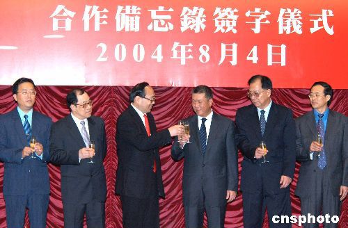 八月四日,中國(guó)人民銀行副行長(zhǎng)李若谷與澳門金融管理局主席丁連星在澳門特區(qū)政府總部多功能廳分別代表雙方簽署澳門銀行辦理個(gè)人人民幣業(yè)務(wù)合作備忘錄,澳門特別行政區(qū)行政長(zhǎng)官何厚鏵等出席簽字儀式。作者:梁永強(qiáng)