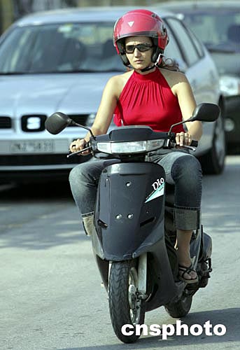 當(dāng)?shù)貢r間8月5日上午,一輪烈日又將雅典帶入一個高溫天氣,一名紅裝摩托女郎從汽車大軍中急速駛過。雅典市有不少時尚男女,熱衷駕駛摩托車。中新社記者:任晨鳴
