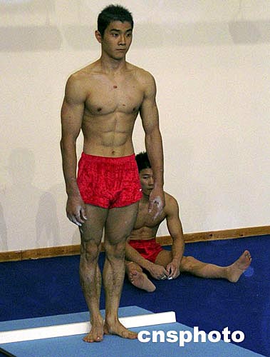 當(dāng)?shù)貢r(shí)間8月7日下午,世界冠軍--中國(guó)男子體操隊(duì)的主力選手邢傲偉等在雅典訓(xùn)練,備戰(zhàn)即將開(kāi)始的比賽。作者:沈晨