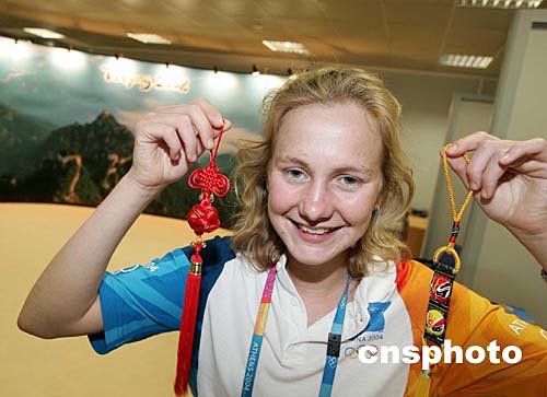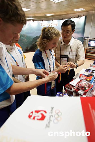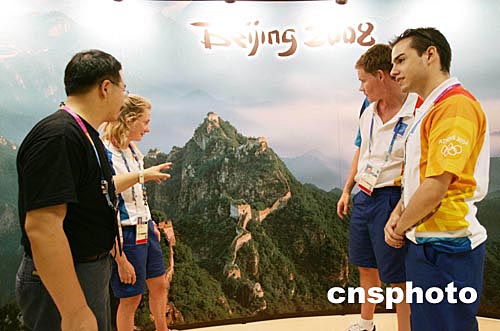 (當(dāng)?shù)貢r(shí)間)二○○四年八月八日,2008北京奧運(yùn)會(huì)組委會(huì)在希臘雅典奧運(yùn)會(huì)新聞中心設(shè)立展臺,宣傳北京奧運(yùn)以及新北京的面貌。中新社記者:毛建軍