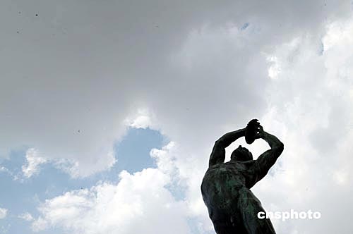 奧運會開賽在即,雅典連日晴空萬里,人們期盼本屆盛會在天時、地利、人和中順利舉行。中新社記者:王瑤