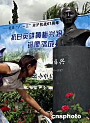 上海市黃埔軍校同學(xué)會等八月十二日在上海舉行紀(jì)念“八·一三”淞滬抗戰(zhàn)暨黃梅興將軍銅像揭幕儀式。黃將軍是“八·一三”淞滬抗戰(zhàn)中殉國的第一位中國軍隊將領(lǐng)。作者:潘索菲