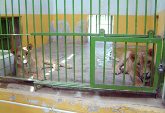 有30年飼養(yǎng)經(jīng)歷的達烏德說:“這些獅子的血統(tǒng)很好,但每個都很兇暴,喂食的時候非常難辦。”這些獅子都是非洲各國贈送給伊拉克的,原來被烏代豢養(yǎng)在他自己的宮殿內(nèi)。隨著薩達姆政權(quán)的垮臺,這些無主的獅子就被挪到動物園里來成為普通人的觀賞物了。 (章田/雅龍)
