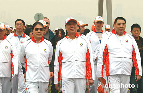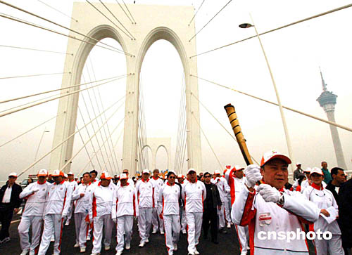 中新社澳門一月八日電(記者黃鴻斌)今天東亞運(yùn)“回歸之火圣火傳遞萬人行”活動(dòng)在澳門舉行。澳門特區(qū)行政長官何厚鏵主持了燃點(diǎn)圣火儀式,三十四名澳門知名人士擔(dān)任火炬?zhèn)鬟f員,圣火沿西灣大橋送抵東亞運(yùn)會(huì)總部。