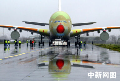 據(jù)報道,空客A380客機可搭乘五百五十名乘客,正式啟用后將是世界上最大的商用客機,并由此改寫由波音747獨霸市場三十年的歷史。有消息說,這架寬體客機將于兩個月后進行測試飛行,目前已經(jīng)生產(chǎn)出四架原型機。