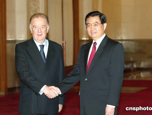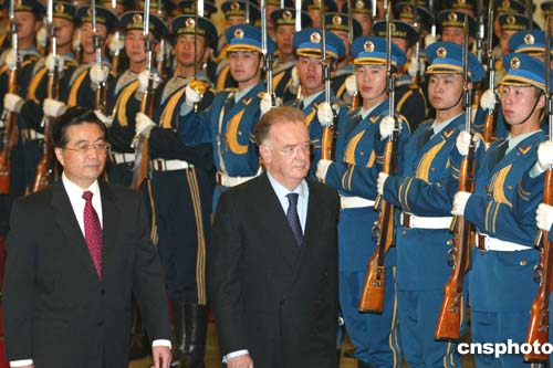 胡錦濤說,中葡在上世紀(jì)末通過友好協(xié)商,順利解決了澳門問題,兩國關(guān)系進入新的發(fā)展時期。為進一步推動中葡關(guān)系的全面發(fā)展,中方愿與葡方一道,保持兩國高層領(lǐng)導(dǎo)人互訪和接觸,密切兩國議會、政黨的友好交流。深化雙邊經(jīng)貿(mào)合作,支持雙方企業(yè)積極探索擴大合作的新領(lǐng)域、新途徑。通過相互支持語言教學(xué)、增派留學(xué)生、互辦文化、體育活動,以及建立聯(lián)合科學(xué)實驗室等方式,擴大在高教、科技、司法等領(lǐng)域的交流與合作。