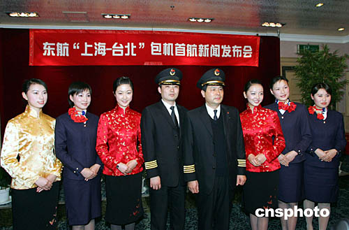 一月十九日,東航“上海—臺(tái)北”包機(jī)飛行的機(jī)組人員在上海正式亮相。身著繡滿中國(guó)傳統(tǒng)“雙飛蝶”圖案唐裝的東航空姐,將在該包機(jī)航班上提供空中服務(wù)。屆時(shí),上海浦東國(guó)際機(jī)場(chǎng)的值機(jī)區(qū)域、頭等艙休息室、VIP和頭等公務(wù)專車等處,安排著唐裝的地面服務(wù)人員也將為旅客提供咨詢引導(dǎo)等服務(wù)。富于濃郁臺(tái)灣風(fēng)味的“佳肴”也將出現(xiàn)在航班上。作者:潘索菲
