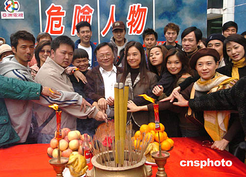 香港電視劇《危險人物》19日在香港亞洲電視臺舉行開鏡拜神儀式﹐劇組制作總監(jiān)梁立人和節(jié)目主持人翁靜晶及劇組全體人員到場誠心拜神﹐祈求拍攝順利。中新社記者:趙振清
