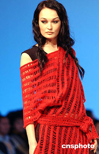 1月21日,香港時裝節(jié)上演第二場“國際時裝設計師表演”,模特展示澳洲時裝設計師Josephine Nathan的作品。