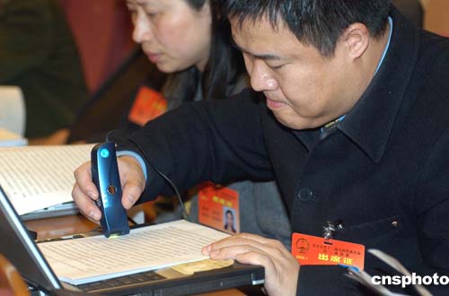 人大代表開(kāi)會(huì)用電腦筆掃描報(bào)告