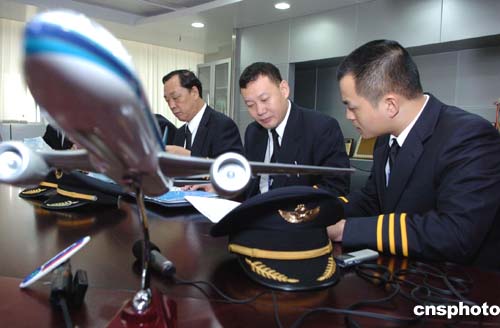 圖為南航飛行機(jī)組人員在做飛行準(zhǔn)備工作。作者:陳文