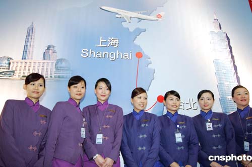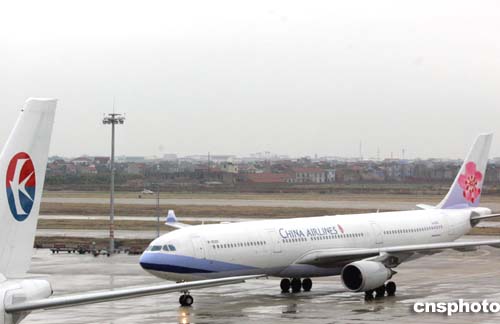今天上午九點(diǎn),上海航空公司波音B七六七臺商春節(jié)包機(jī)的第二個航班也滿載著二百五十二名臺商,準(zhǔn)點(diǎn)從浦東機(jī)場起飛飛往臺北。這些旅客中有兒童二十二名,嬰兒一名。