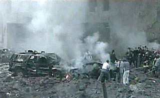 英國《獨立報》的記者費思克告訴美國有線電視新聞網(wǎng):“現(xiàn)場非常血腥。我看到車內(nèi)有數(shù)具正在燃燒的尸體。爆炸留下的彈坑約有5米深,所以這是一枚大炸彈。至少有22輛小車仍在燃燒,其中一輛車被炸到三層樓那么高的地方。另一輛車看起來被炸到圣喬治賓館墻外面去了。在街對面,水正從破裂的水管中涌出。當消防隊員到達現(xiàn)場時,他們不得不將消防水管拖過遇難者的尸體以撲滅大火!